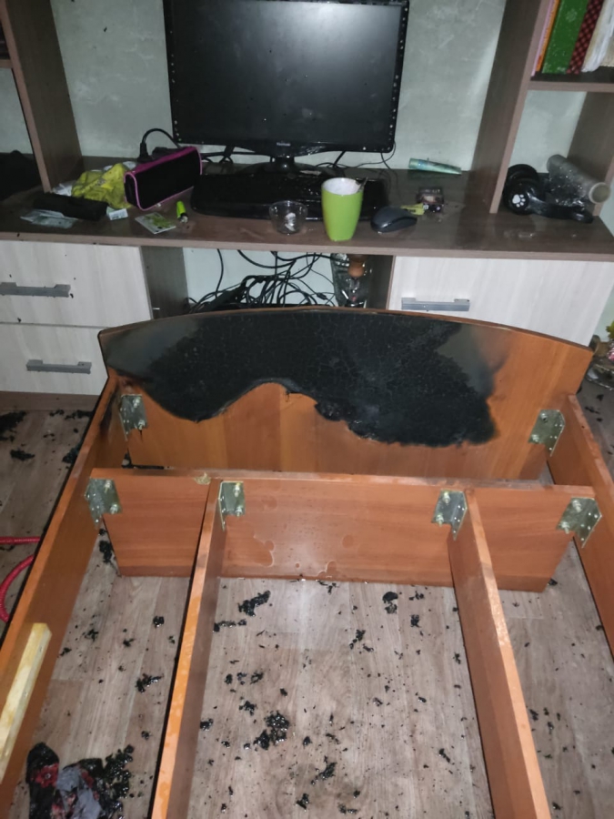 В ведомстве пояснили, что в 17.03 поступил сигнал о пожаре в однокомнатной квартире на 1-м этаже 5-этажного дома по улице Комарова. Пожарные расчеты прибыли на место происшествия и погасили матрас на кровати, горевший на площади 2 квадратных метра. Погибших и пострадавших в этом ЧП нет.