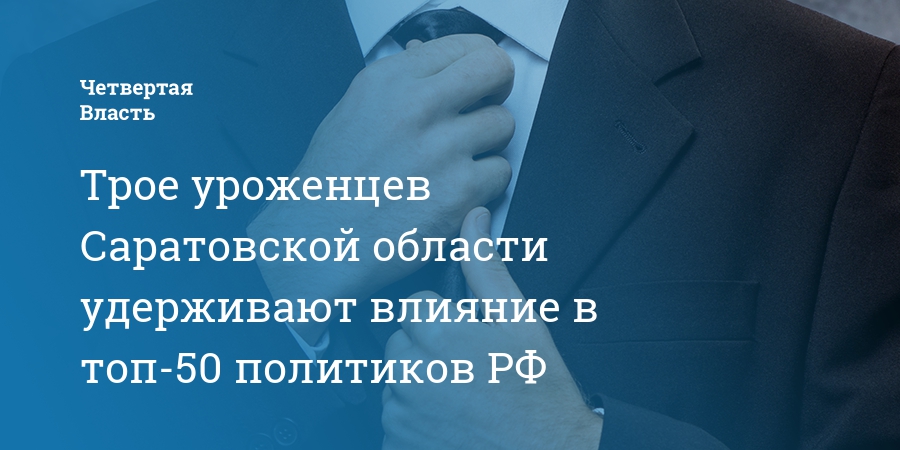 Трое уроженцев Саратовской области продолжают удерживать позиции в топ-50 политиков России. Рейтинг «100 ведущих политиков России» создан Агентством политических и экономических коммуникаций и опубликован в «Независимой газете».