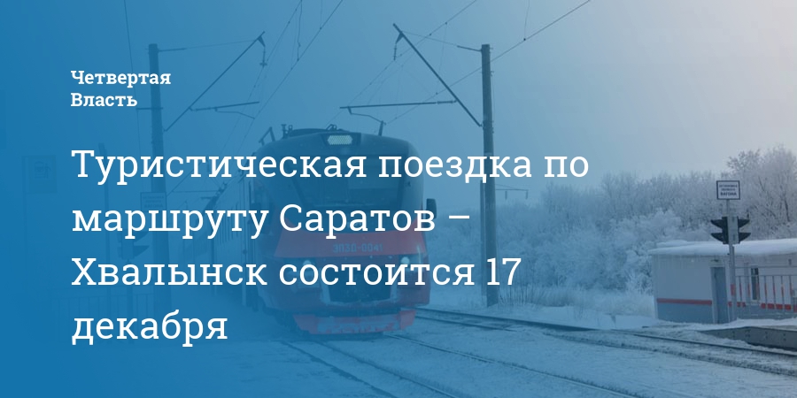 В субботу, 17 декабря, состоится туристическая поездка по маршруту Саратов – Хвалынск. Для перевозки пассажиров будет задействован комфортабельный пригородный поезд и автобусы. По железной дороге туристы доедут до станции Кулатка, где их будет ждать трансфер до Хвалынска. Время в пути составит около 4 часов. На посещение местных достопримечательностей будет отведено более 7 часов.