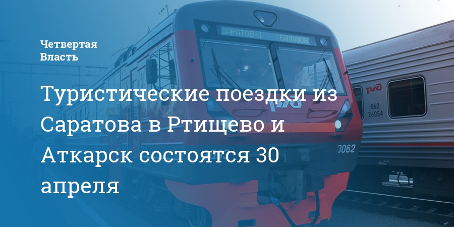 Во вторник, 30 апреля, состоятся туристические поездки на электропоезде из Саратова в Ртищево и Аткарск. Со станции Саратов-1 пригородный поезд №6061 Саратов-1 – Балашов отправится в 8:44. В 10:14 он прибудет в Аткарск, а в 11:58 – в Ртищево. В зависимости от выбранного города пассажиры примут участие в одной из двух экскурсионных программ.