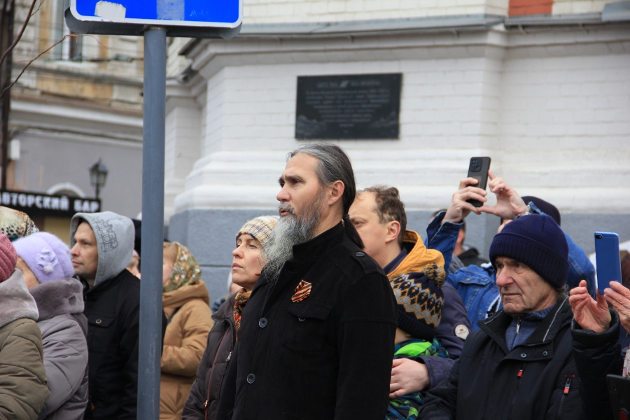 В конце возле Свято-Троицкого кафедрального собора (Московская, 6) присутствующие совершили праздничный молебен, а после волонтеры организовали для крестоносцев праздничную трапезу на полевой кухне.