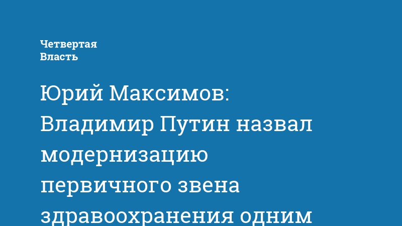 Юрий Максимов: Владимир Путин назвал модернизацию первичного звена здравоохранения одним из основных приоритетов
