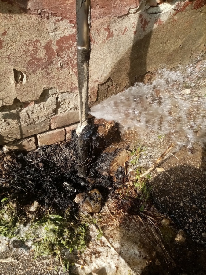 По словам автора поста, по улице Карла Маркса (микрорайон Агафоновка) дети подожгли тополиный пух вблизи дома №3Б. После этого пламя перекинулось на водяную трубу, из-за чего она лопнула. Последствием стал прорыв водопровода и отсутствие воды во всем здании.