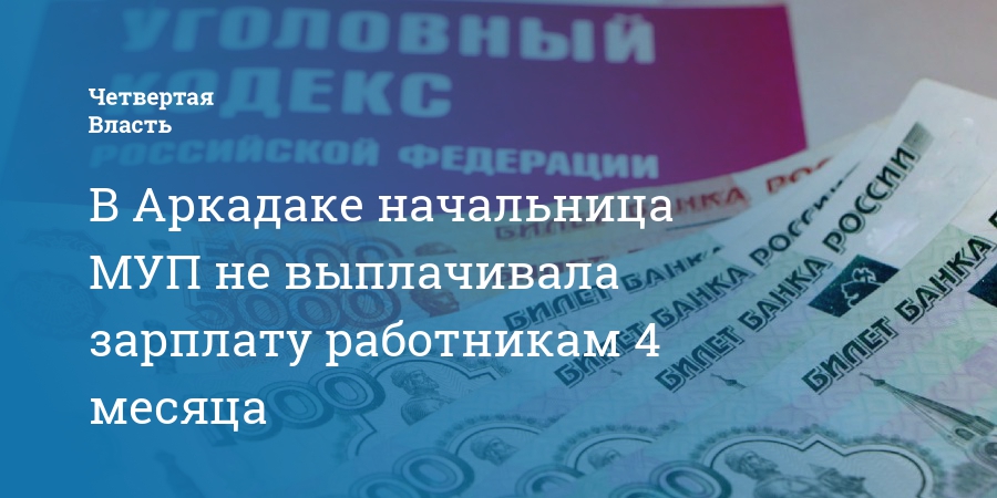 Возбуждено уголовное дело по факту невыплаты заработной платы сотрудникам муниципального предприятия (часть 2 статьи 145.1 УК РФ). Теперь ей грозит лишение свободы сроком до 3 лет.