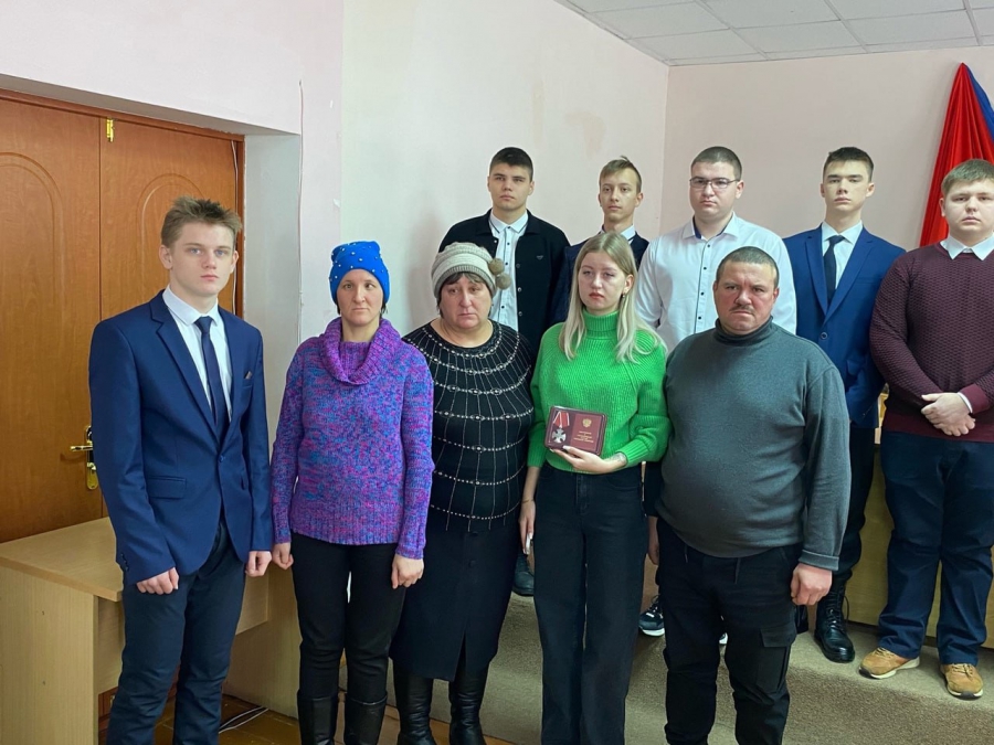 Орден Мужества передали жене защитника, Дарье Болотниковой. Присутствующие чиновники и военный комиссар выразили соболезнования семье погибшего и почтили память воина минутой молчания.