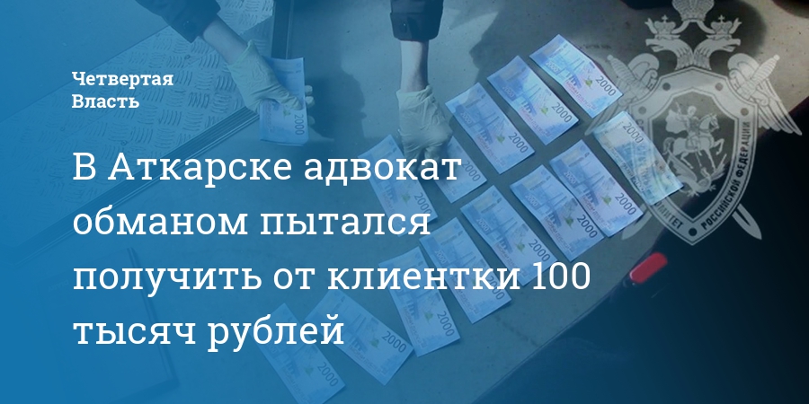 В Аткарске адвокат обманом пытался получить от клиентки 100 тысяч рублей