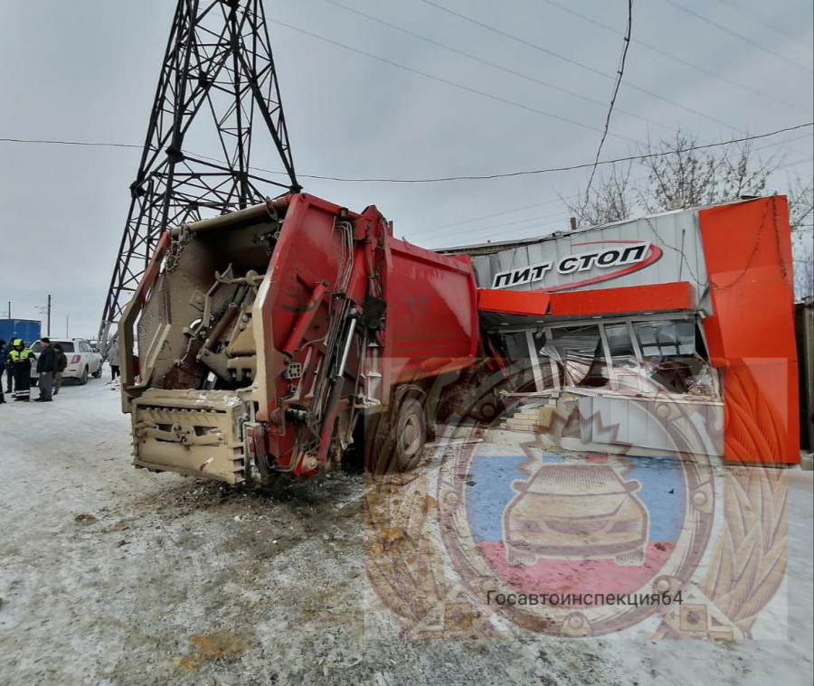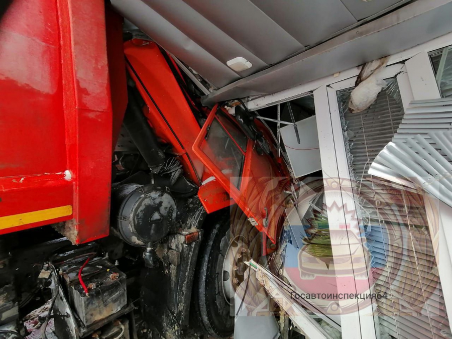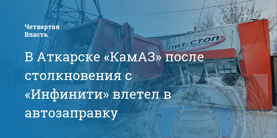 В Аткарске «КамАЗ» после столкновения с «Инфинити» влетел в автозаправку