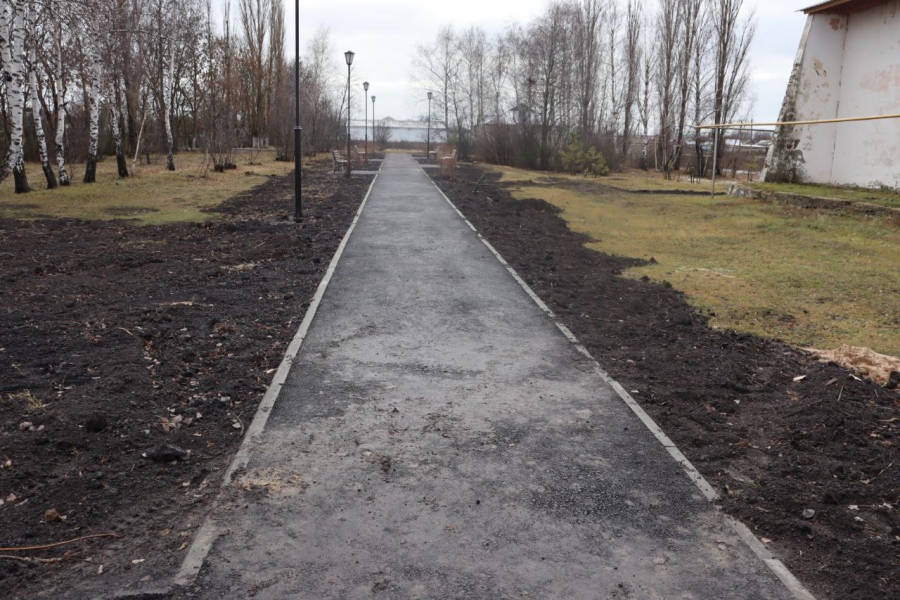 В рамках работы по благоустройству установили скамейки, урны для мусора, светильники, ограждение, а также уложили тротуарные бордюры и заасфальтировали пешеходные дорожки.
