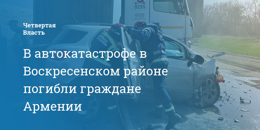 Сегодня, 19 апреля, в Воскресенском районе Саратовской области в результате автокатастрофы погибли граждане Армении. Информацию об этом подтвердил «Четвертой Власти» источник в правоохранительных органах.