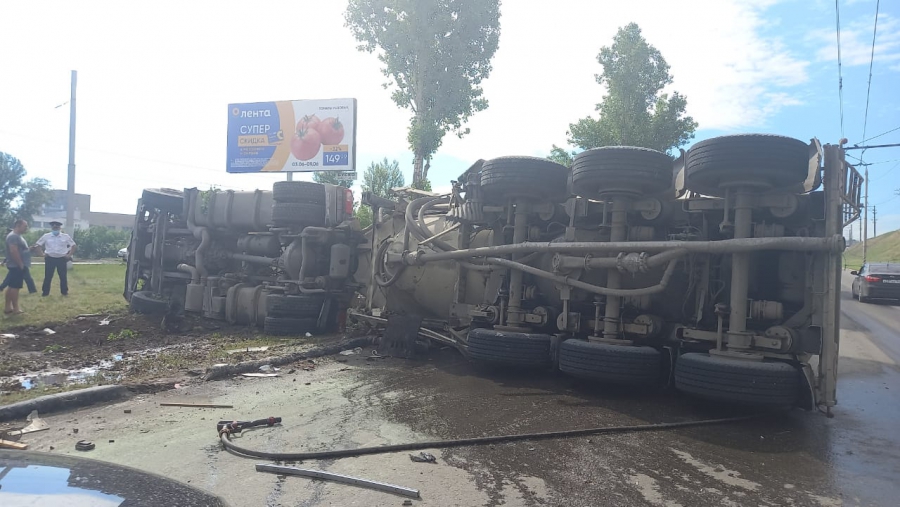 В Балакове автоцистерна протаранила три машины и опрокинулась на бок