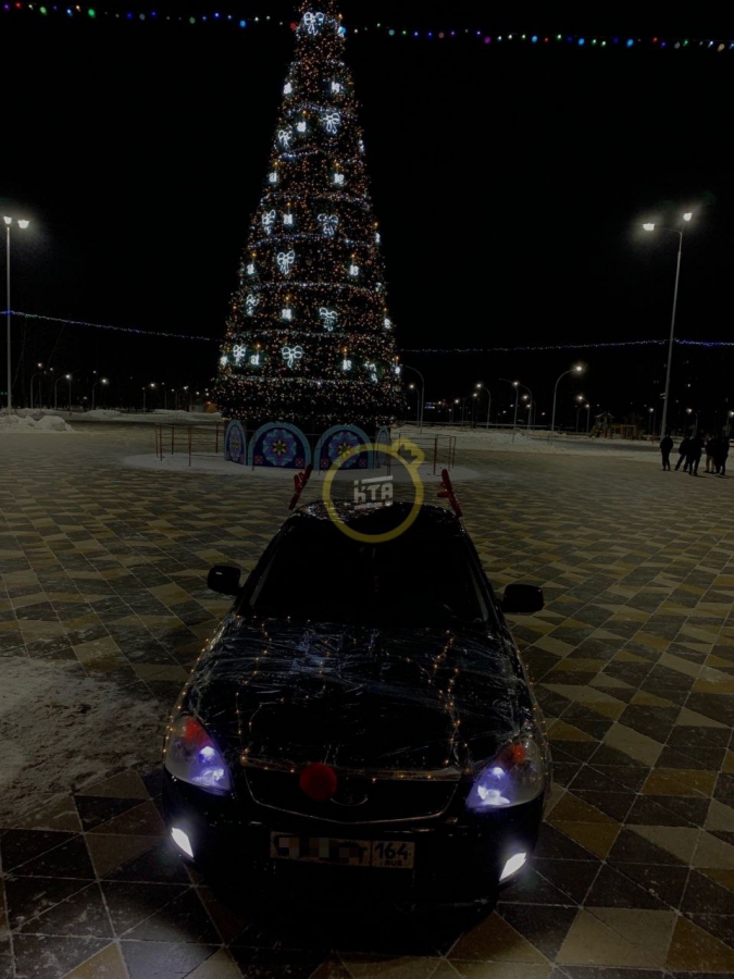 В Балакове автохам припарковал «Приору» на пешеходной зоне ради фото у елки