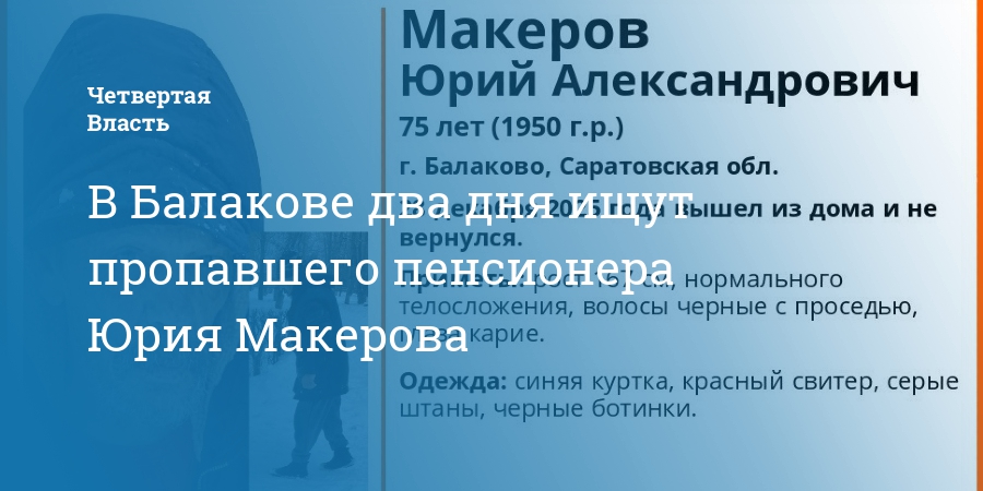 В Балакове два дня ищут пропавшего пенсионера Юрия Макерова