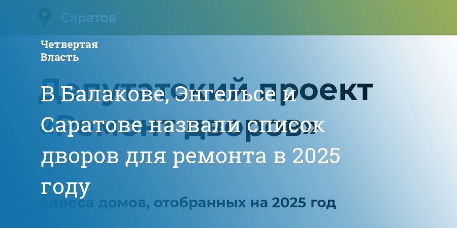 В Балакове, Энгельсе и Саратове назвали список дворов для ремонта в 2025 году