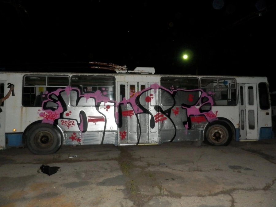 Предполагается, что злоумышленники перебрались через забор депо, перерезав при этом проволоку, ограждающую территорию. Там они разрисовали не менее 4-х троллейбусов с помощью баллонов с краской.