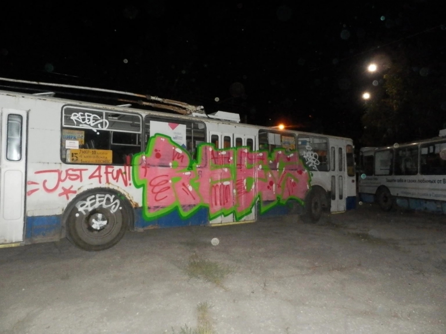 В Балакове хулиганы проникли в депо и разрисовали троллейбусы
