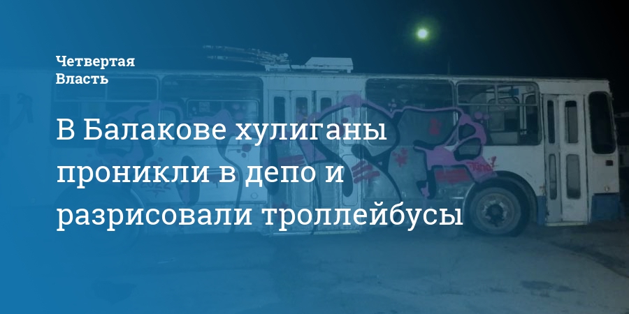 В Балакове Саратовской области хулиганы проникли на территорию депо и нанесли граффити на троллейбусы. Пост об этом разместили в группе «Типичный Балаково» соцсети «ВК». Информацию подтвердили «Четвертой Власти» в пресс-службе районной администрации.