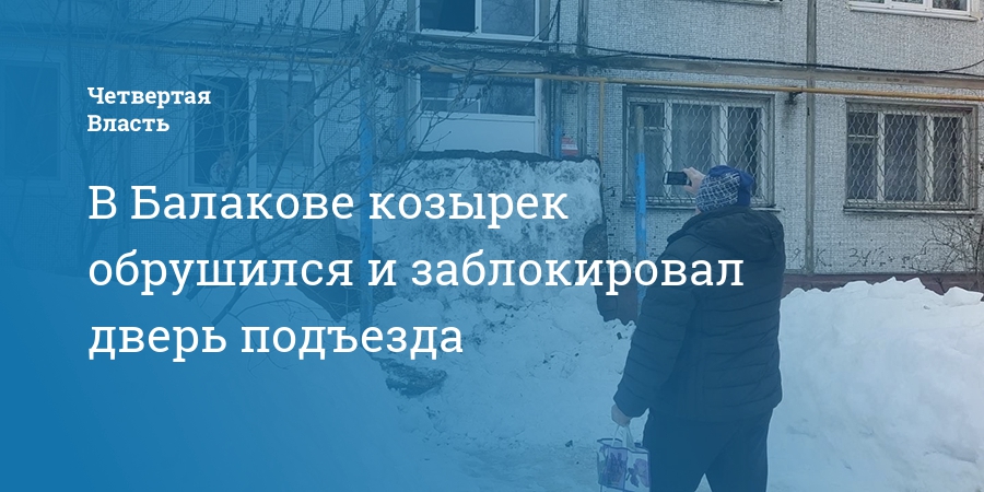 Вчера, 20 февраля, в Балакове Саратовской области произошло обрушение козырька, установленного у входа в подъезд многоквартирного дома. В результате жильцы не имели возможности войти или выйти.