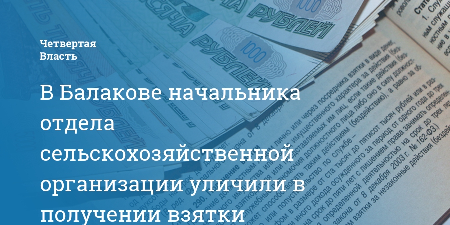 В Балакове начальника отдела сельскохозяйственной организации уличили в получении взятки