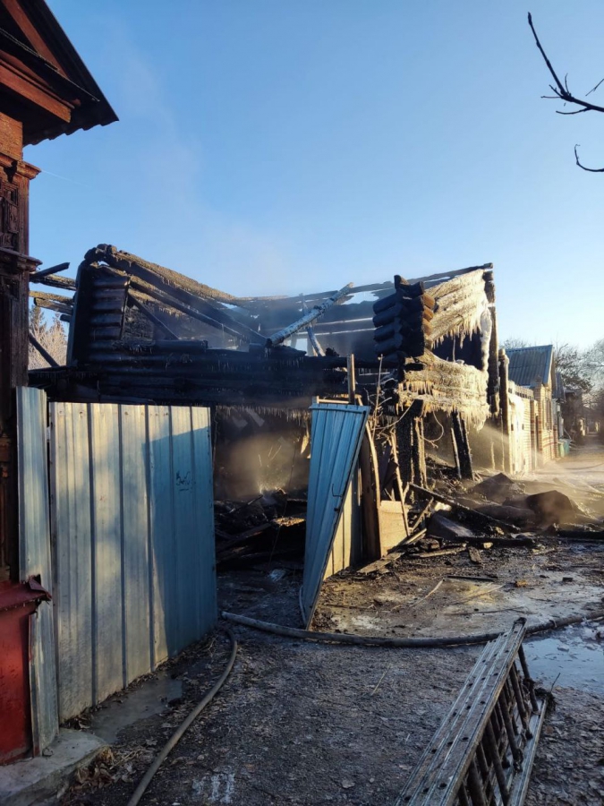 Вызов о пожаре на улице Чернышевского, 31 зафиксировали в 3.59. Огонь распространился на 96 кв. м и полностью уничтожил здание. На тушение возгорания выезжало три пожарных расчета.