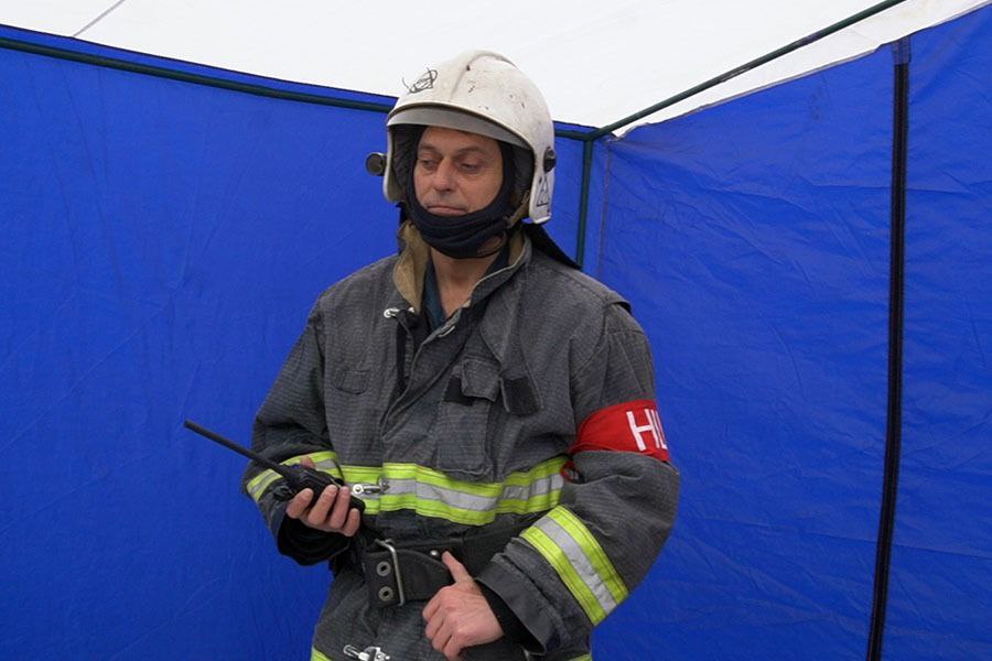 В ходе учений была дана новая вводная - об обрушении части здания и срочной эвакуации всего личного состава. Именно для быстрого поиска в случае завала у каждого газодымозащитника на поясе прикреплен «маяк-спасатель», который в случае опасности подает громкий звук. В этот раз всем пожарным оперативно удалось выбраться из здания, и современный гаджет не понадобился.
