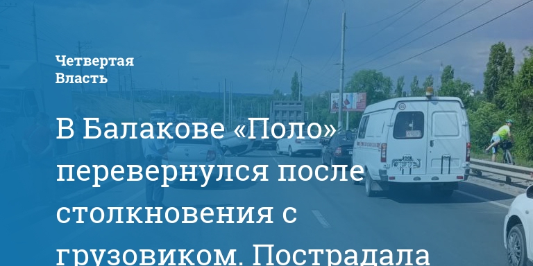 В Балакове «Поло» перевернулся после столкновения с грузовиком. Пострадала женщина