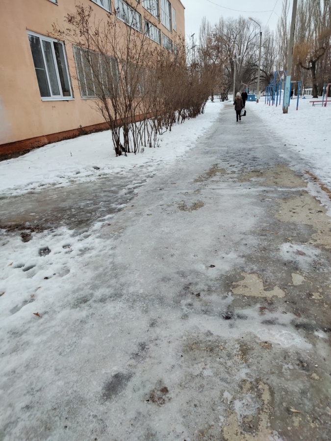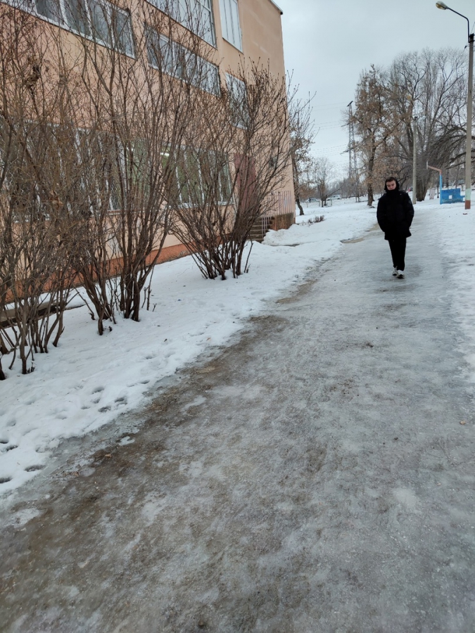 В Балакове школьникам приходится пробираться в лицей №2 по гололеду