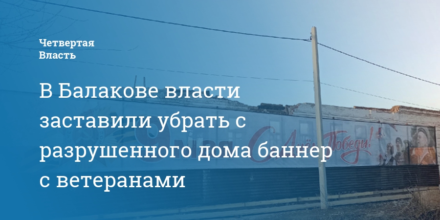 В Балакове власти заставили убрать с разрушенного дома баннер с ветеранами