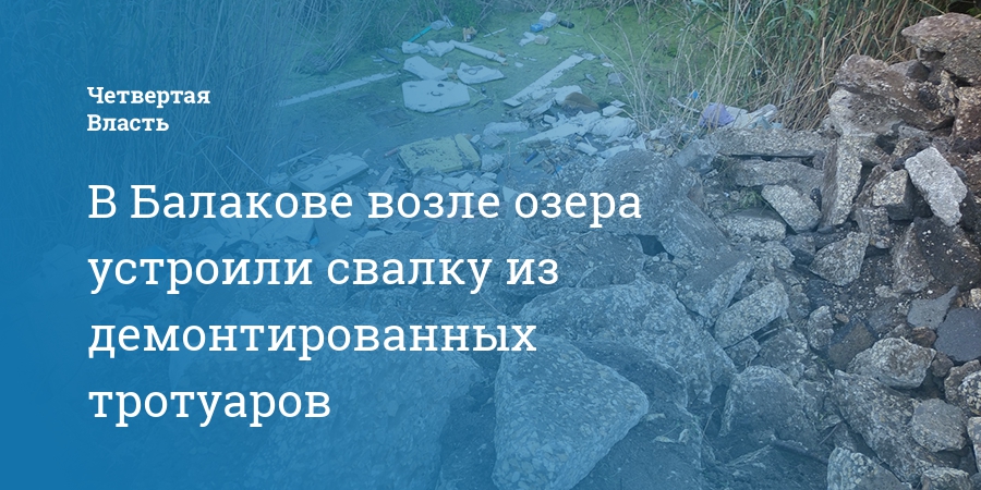 В Балакове Саратовской области обнаружена крупная свалка из бетонного боя, предположительно, появившегося после демонтажа городских тротуаров (сейчас идет их активная замена). Как сообщает издание «Суть», кучу нашли на берегу озера Иловатое в островной части города.