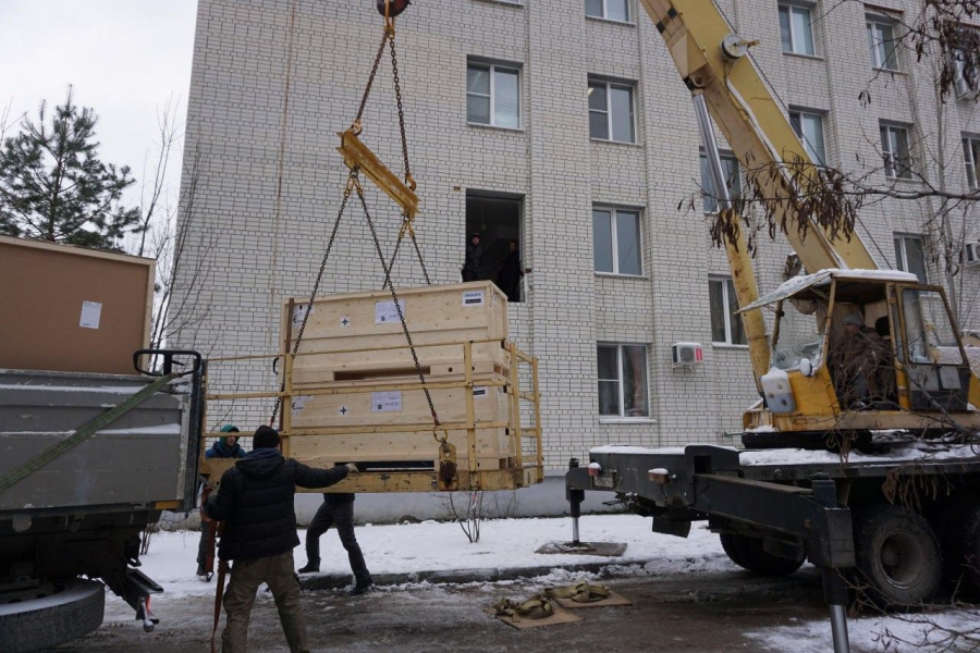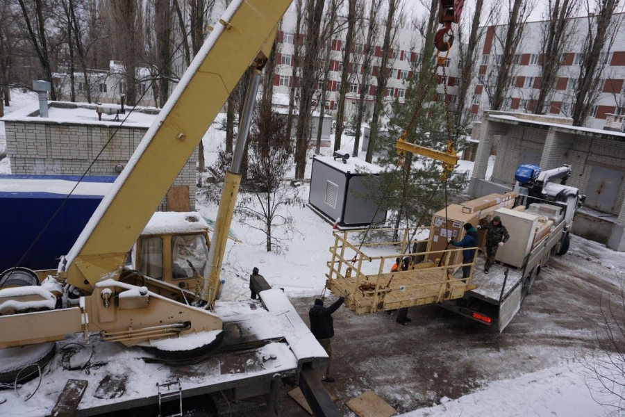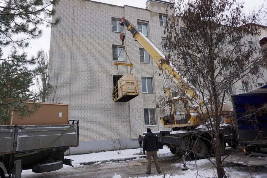 В балаковскую больницу подъемным краном доставили ангиографический комплекс