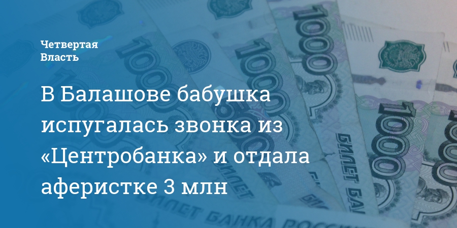 В Балашове бабушка испугалась звонка из «Центробанка» и отдала аферистке 3 млн