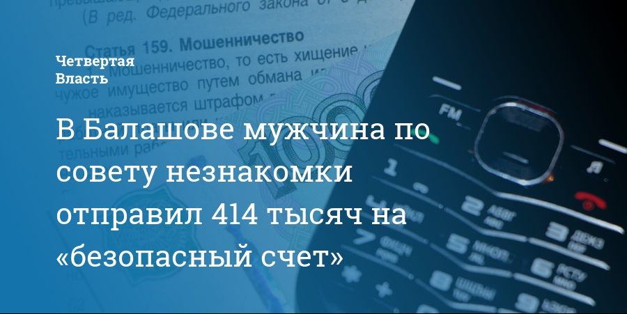 В Балашове мужчина по совету незнакомки отправил 414 тысяч на «безопасный счет»