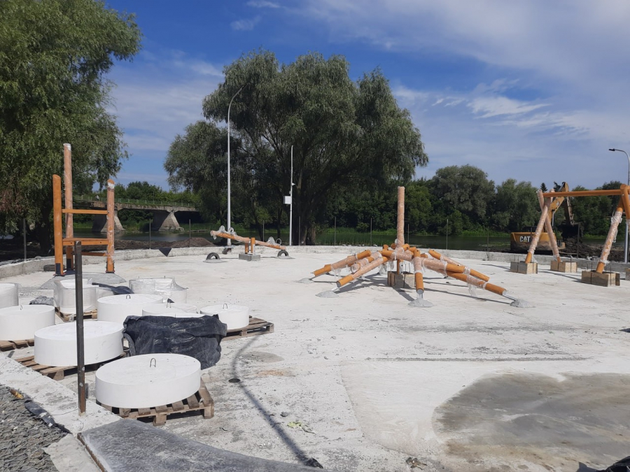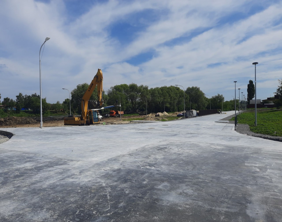 Зампред правительства области Павел Мигачев отметил, что к настоящему моменту подрядчик уже выполнил разбивку и планировку территории, укрепил поверхности габионными конструкциями, залил бетонные основания детской площадки и помещения спасателей, провел работы по устройству сетей водоснабжения, электроснабжения и дорожного полотна. Более того, установлена детская площадка, арт-объекты (корабли, цифры «365») в районе набережной реки Хопер, смонтированы трибуны и ограждения прогулочной зоны. Сейчас площадку готовят для установки арт-объекта «Рыбы». Все малые архитектурные формы изготавливаются из полимерно-песчаного материала в антивандальном исполнении.