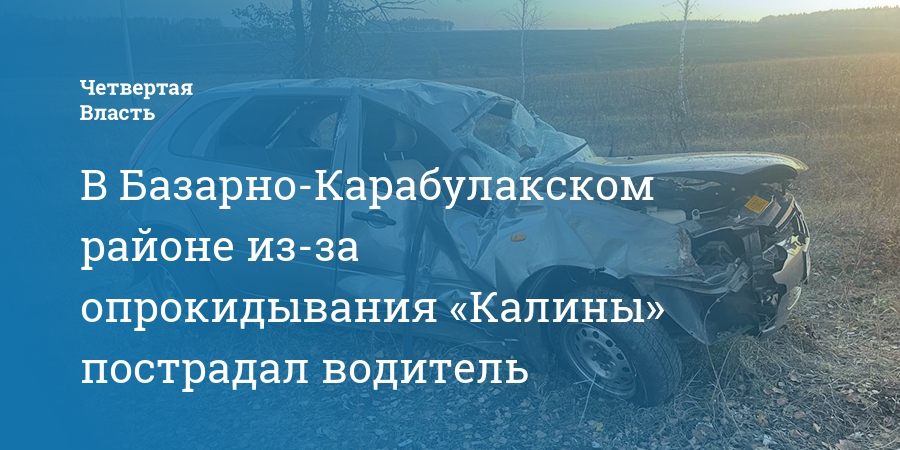 В Базарно-Карабулакском районе из-за опрокидывания «Калины» пострадал водитель