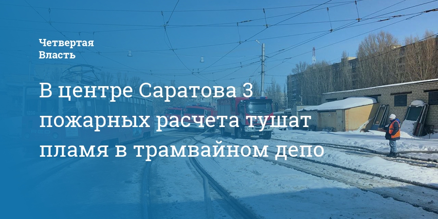 В центре Саратова 3 пожарных расчета тушат пламя в трамвайном депо