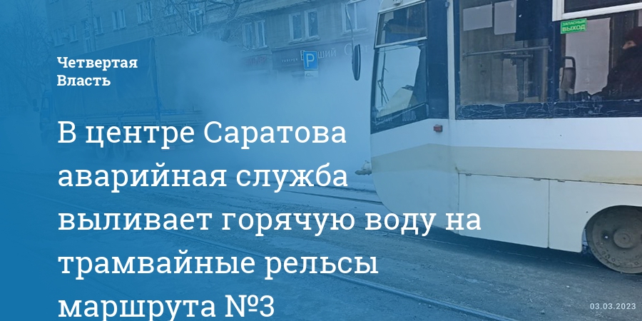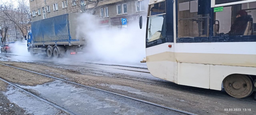В центре Саратова аварийная служба выливает горячую воду на трамвайные рельсы маршрута №3