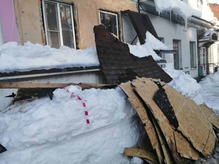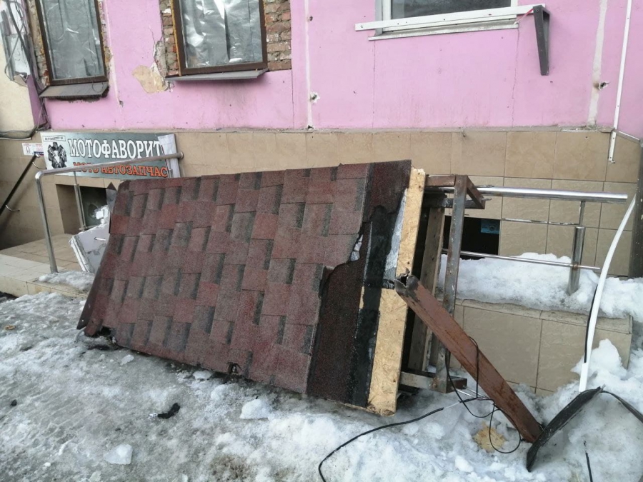 Напомним, обрушение произошло 13 февраля. Вероятно, козырек рухнул из-за скопившиеся снежной массы.