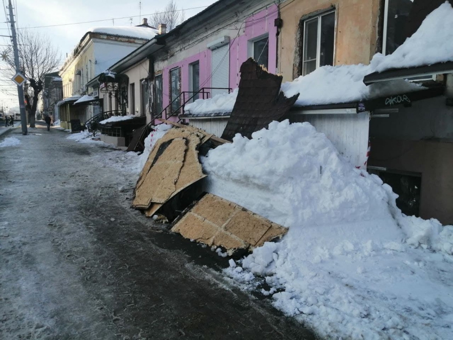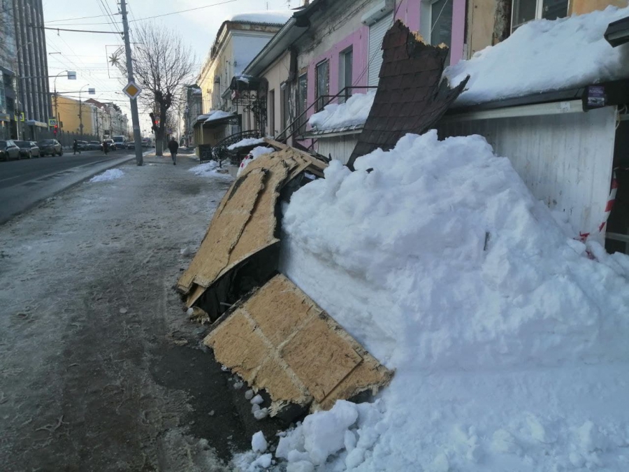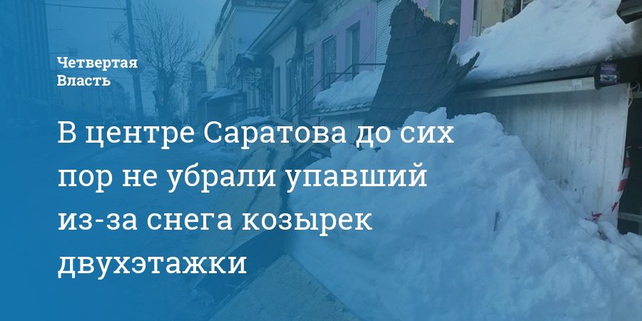В центре Саратова до сих пор не убрали упавший из-за снега козырек двухэтажки