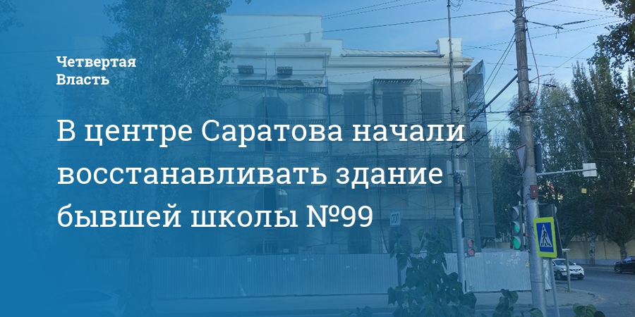 В Кировском районе Саратова началось восстановление исторического здания бывшей школы №99. По наблюдениям корреспондента «Четвертой Власти», сейчас со здания сняли фальшфасад, который висел там несколько лет, а также возвели строительные леса.
