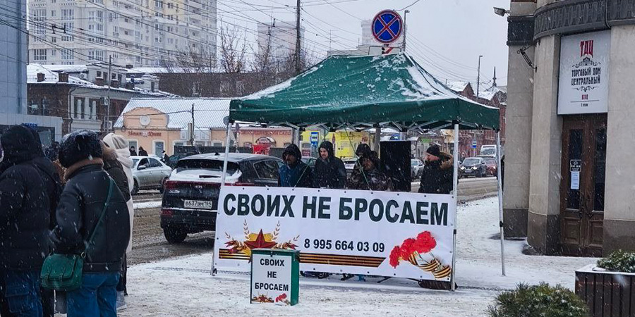 Сбор средств осуществляется на улице Чапаева, на участке площади Кирова. Там стоят несколько человек с палаткой и развернутым транспарантом «Своих не бросаем». На нем также изображены три гвоздики, георгиевская лента и красная звезда, а также номер телефона. Никаких других обозначений не имеется. Под куполом палатки также размещены аудиоколонки, из которых звучат патриотические композиции.