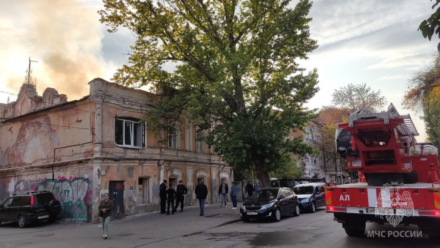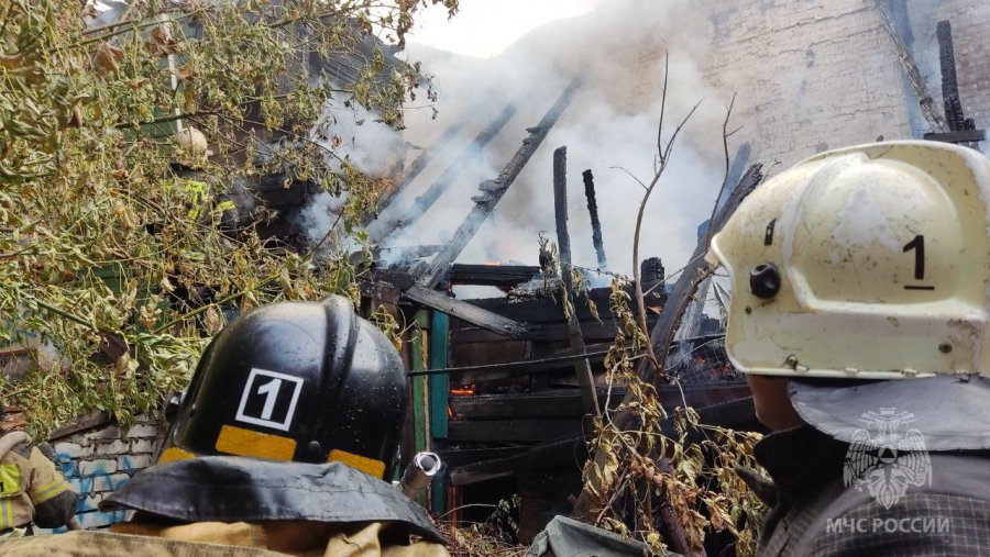 В центре Саратова огнеборцы тушат расселенный одноэтажный дом