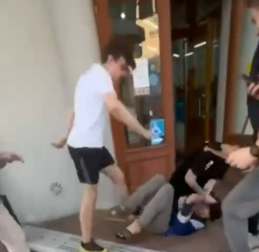 Кроме того, в комментариях появилось другое видео с участием данного подростка. Толпа парней избила его ногами на крыльце Дома книги (Вольская, 81). Судя по тому, что на неизвестном другая одежда, это произошло в другой период времени.
