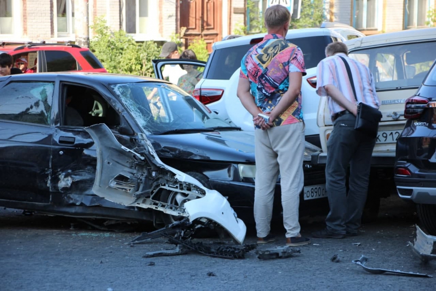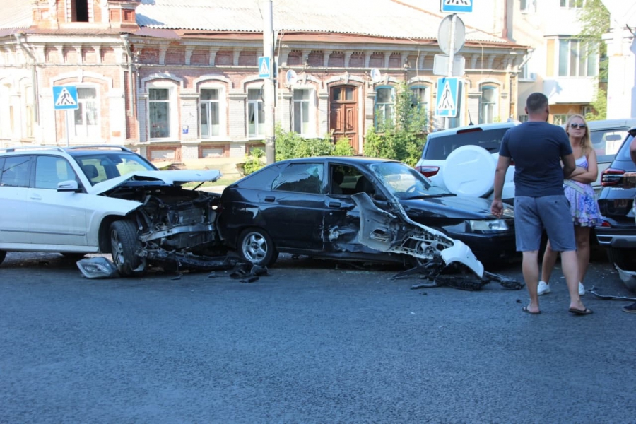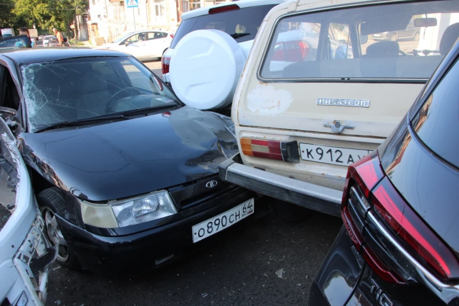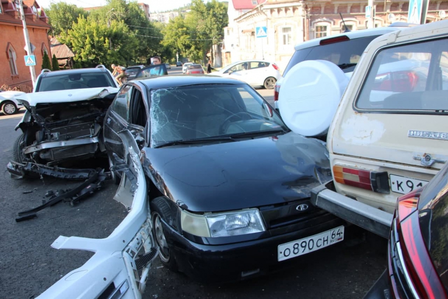 Сегодня днем, 13 июля, в центре Саратова произошло столкновение двух автомобилей, в результате чего повреждения получили еще две припаркованные машины.