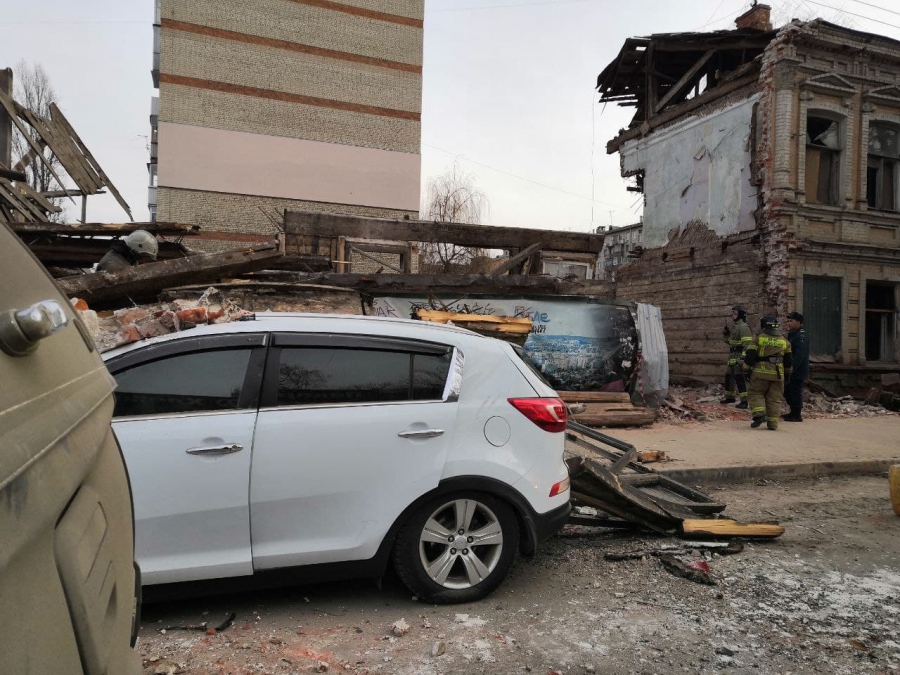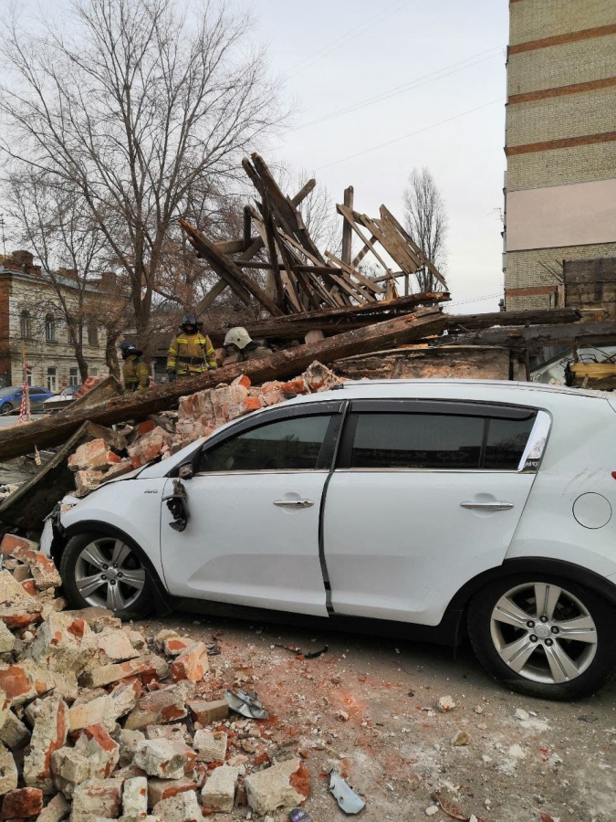 В центре Саратова стена дома рухнула на автомобиль. Есть пострадавший
