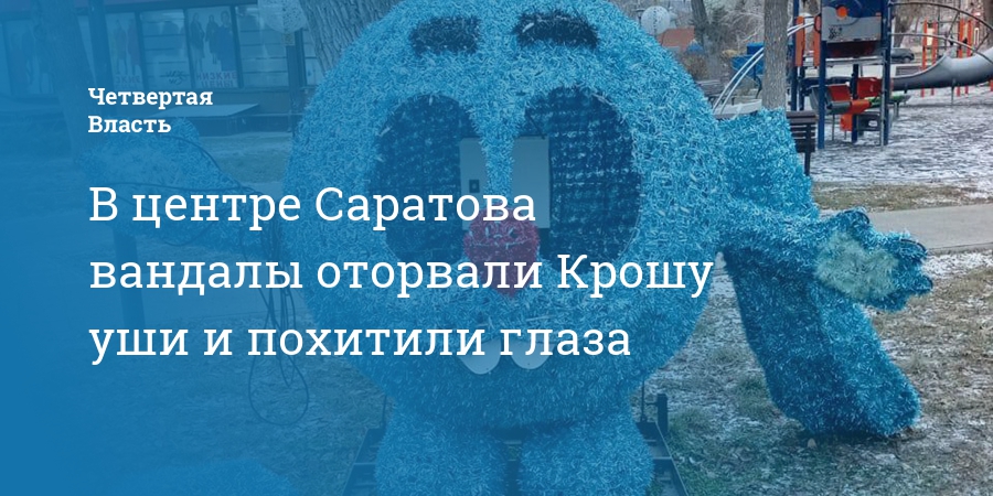 Во Фрунзенском районе Саратовской области у уличной инсталляции с Крошем (персонаж мультфильма «Смешарики») оторвали уши и вырвали глаза. Об этом сообщили в пресс-службе администрации города.