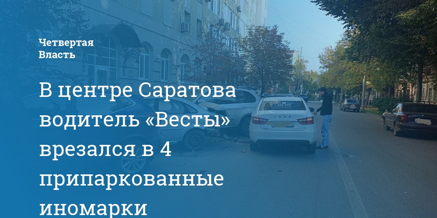В центре Саратова водитель «Весты» врезался в 4 припаркованные иномарки