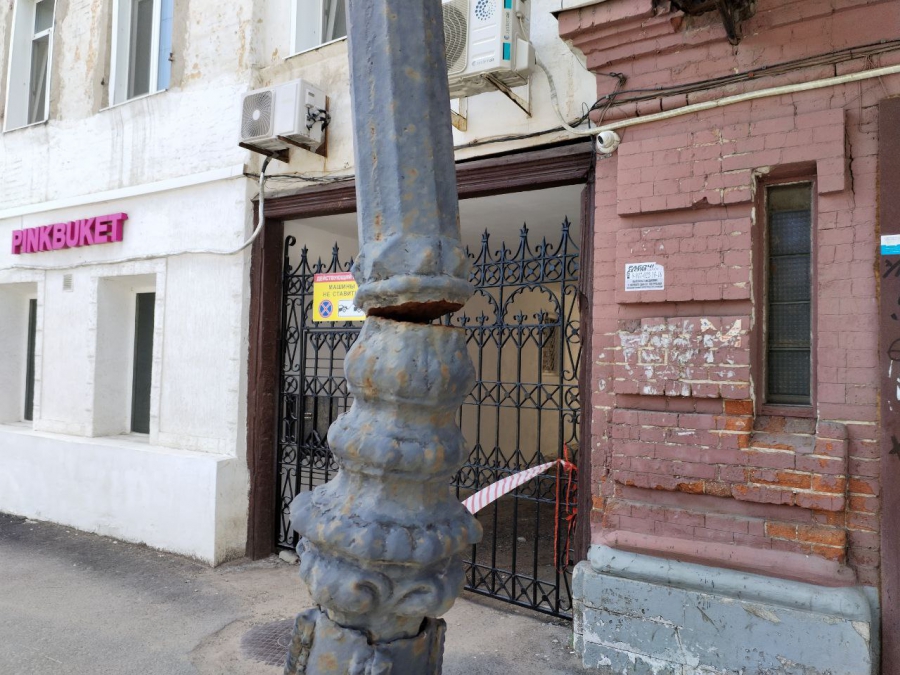 В Саратове у Дома Горина на улице Московской лопнула чугунная стойка балкона. Конструкция грозит обрушиться на головы случайных прохожих.