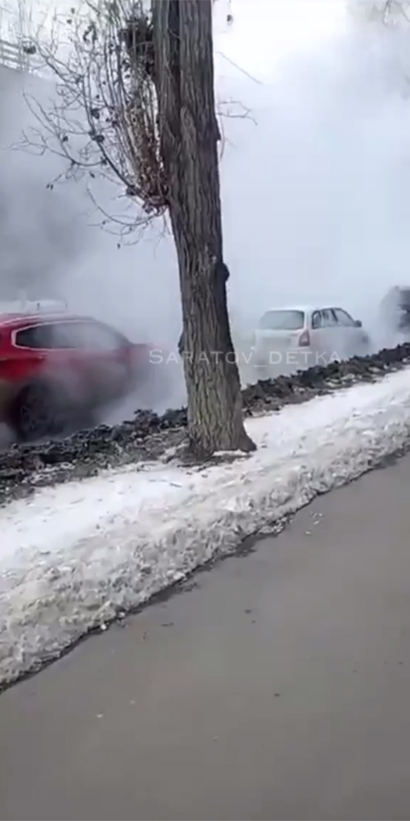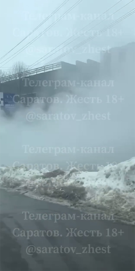 В телеграм-канале «Саратов. Жесть» очевидцы поделились кадрами с места происшествия. На проезжей части машины не могут проехать из-за густого пара, который образовался из-за горячей воды.