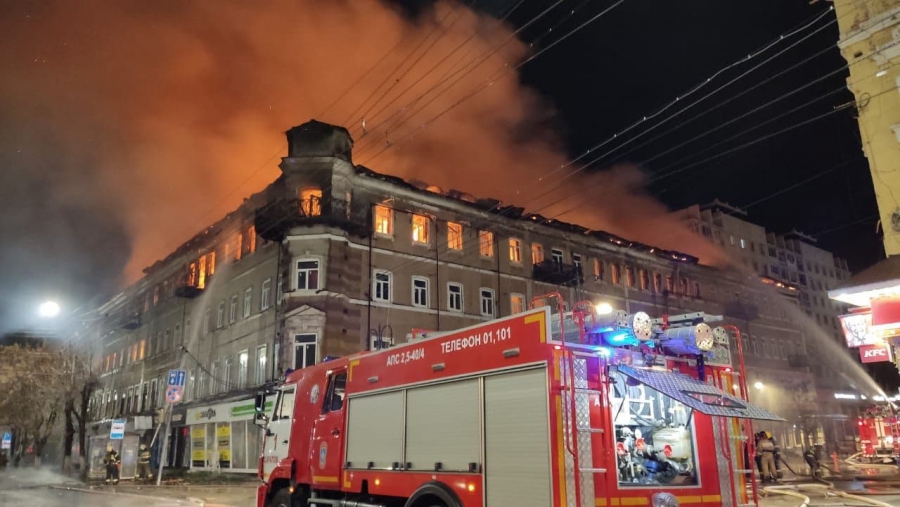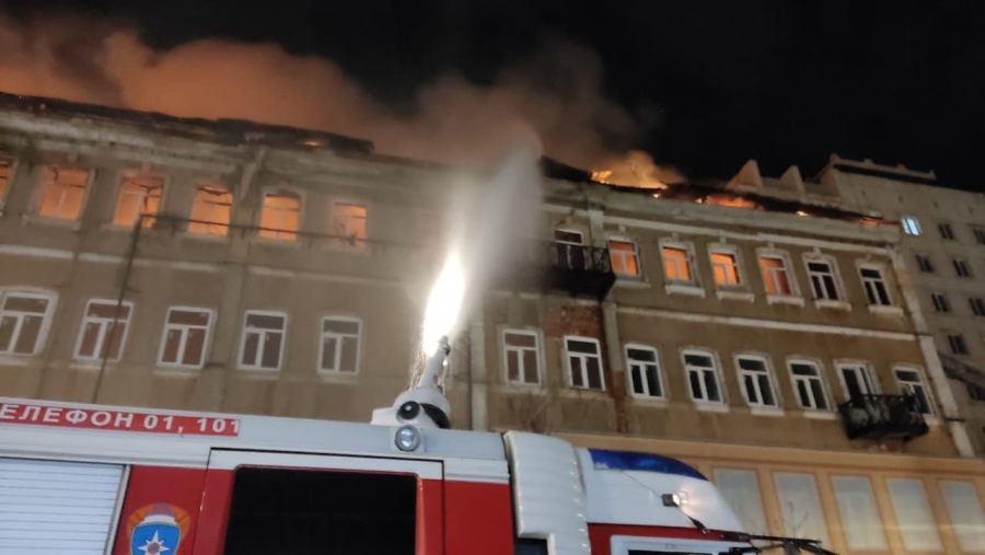 Сегодня ночью в Саратове загорелось здание гостиницы «Россия» на проспекте Кирова. Как рассказали в региональном ГУ МЧС, вызов на пульт дежурного поступил около 1.40.