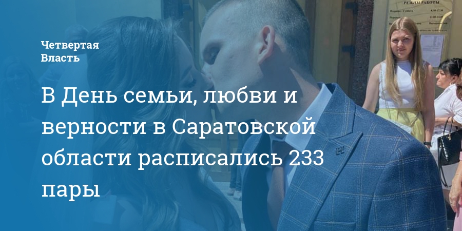 Сегодня, 8 июля, в День семьи, любви и верности, на территории Саратовской области браки узаконили 233 пары. Об этом сообщили в управлении по делам ЗАГС правительства области.