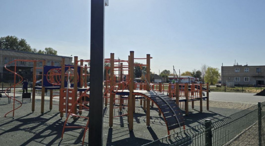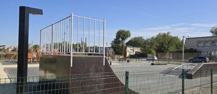 Еще в поселке появилась спортивная площадка со скейт-парком. Для детей смонтировали игровой комплекс, положили безопасное покрытие, установили малые элементы архитектуры.